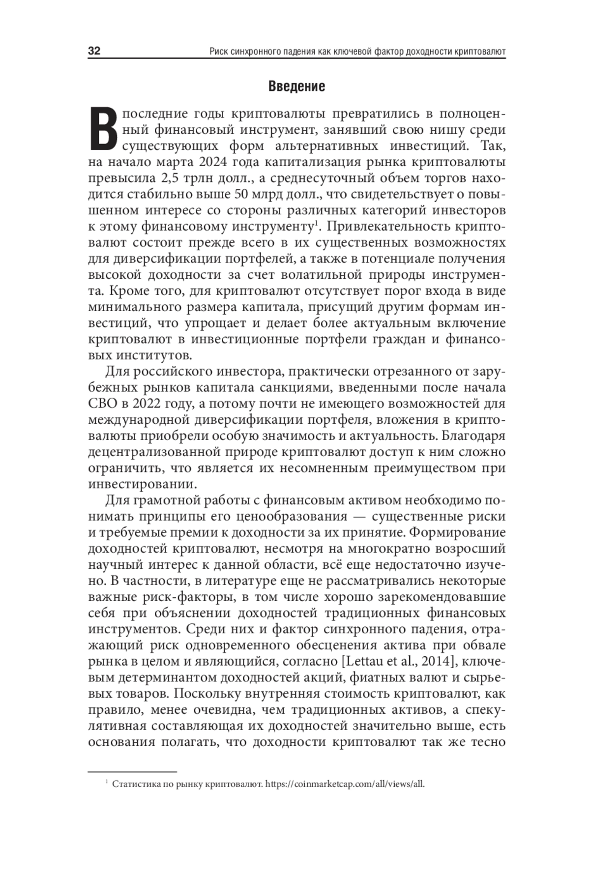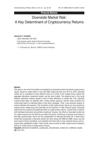 КУСЛЯЙКИН А. В. РИСК СИНХРОННОГО ПАДЕНИЯ КАК КЛЮЧЕВОЙ ФАКТОР ДОХОДНОСТИ КРИПТОВАЛЮТ // ЭКОНОМИЧЕСКАЯ ПОЛИТИКА. 2025. ТОМ 20, № 1