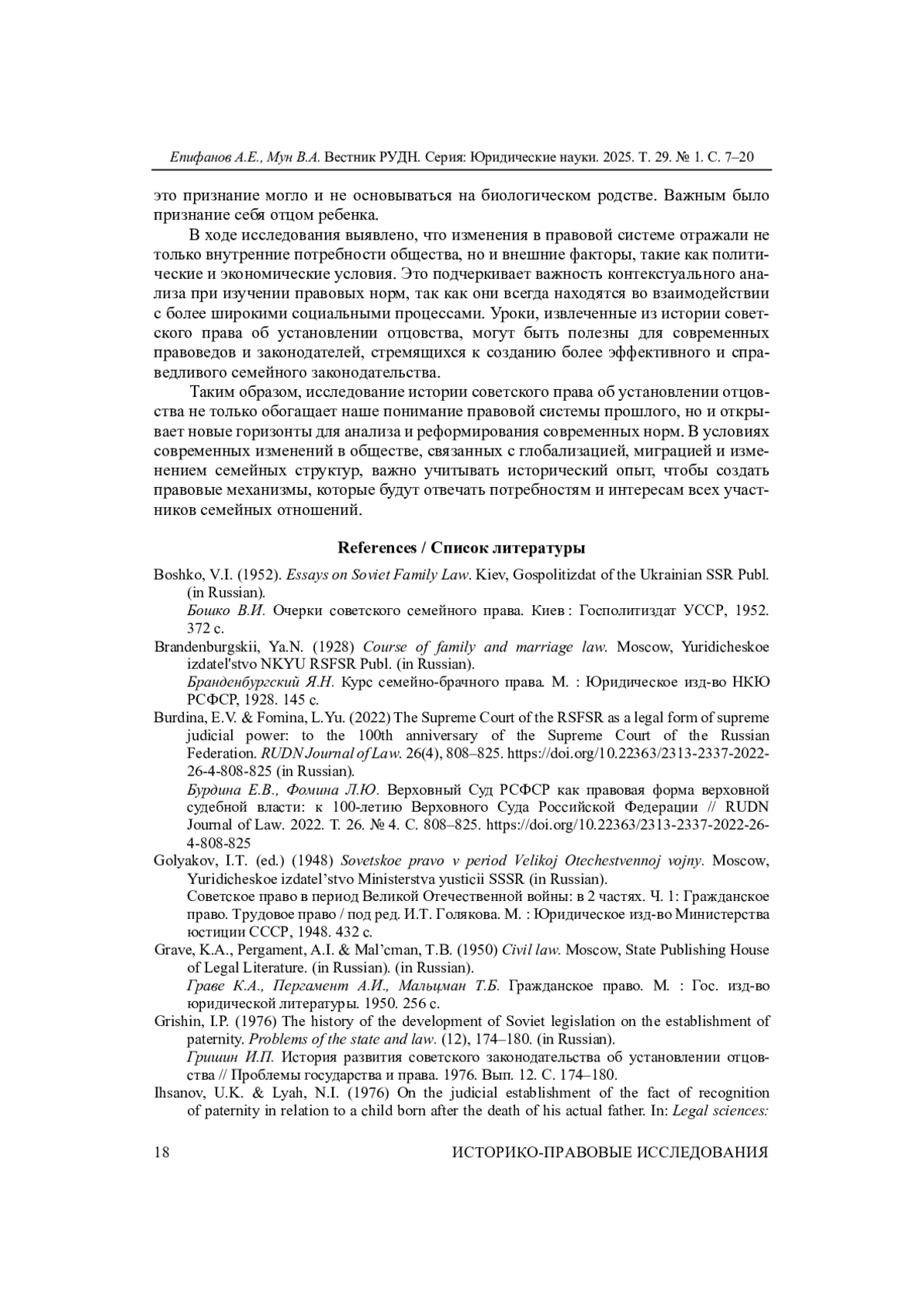 3. 	Бурдина Е.В., Фомина Л.Ю. Верховный Суд РСФСР как правовая форма верховной судебной власти: к 100-летию Верховного Суда Российской Федерации // RUDN Journal of Law. 2022. Т. 26. № 4. С. 808-825. DOI: 10.22363/2313-2337-2022-26-4-808-825