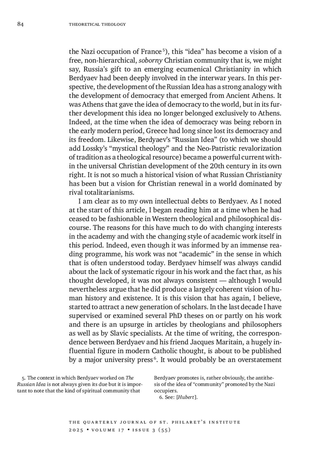 4. 	Hubert B. (2025). An Exceptional Dialogue, 1925-1948. Nicolas Berdyaev and Jacques Maritain. Toronto: McGill-Queen’s University Press.