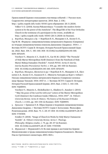 5. 	Ермилов П. В. Образ Церкви в творениях священномученика Дамаскина Цедрика // Вестник ПСТГУ. Серия I: Богословие. Философия. Религиоведение. 2018. Вып. 75. С. 28-47. DOI: 10.15382/sturI201875.28-47 EDN: YTXYKW