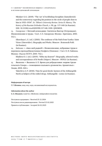 15. 	Яковлева А. П. Время для доброделания: миряне Архангельского Севера - помощники ссыльного духовенства. Архангельск: Лоция, 2018. 224 с.