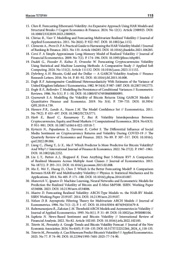 15. Chen R. Forecasting Ethereum’s Volatility: An Expansive Approach Using HAR Models and Structural Breaks // Cogent Economics & Finance. 2024. No 12(1). Article 2300925. https://doi.org/10.1080/23322039.2023.2300925.