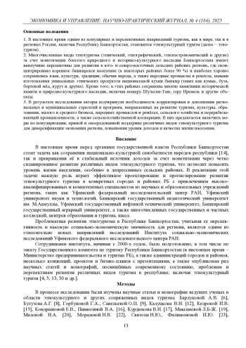 Статья: РАЗВИТИЕ ЭТНОТУРИЗМА В РЕСПУБЛИКЕ БАШКОРТОСТАН КАК ФАКТОР МОНЕТИЗАЦИИ УНИКАЛЬНЫХ ОБЪЕКТОВ ИСТОРИКО-КУЛЬТУРНОГО НАСЛЕДИЯ ДЛЯ ПОВЫШЕНИЯ ДОХОДОВ И КАЧЕСТВА ЖИЗНИ НАСЕЛЕНИЯ РЕГИОНА (2025)