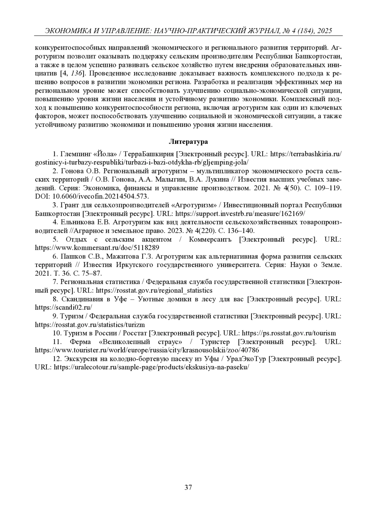 МАРКИНА С. В., ТАЙМАСОВ А. Р. ПЕРСПЕКТИВЫ АГРОТУРИЗМА В ПОВЫШЕНИИ КОНКУРЕНТОСПОСОБНОСТИ РЕГИОНА // ЭКОНОМИКА И УПРАВЛЕНИЕ: НАУЧНО-ПРАКТИЧЕСКИЙ ЖУРНАЛ. 2025. № 4 (184)