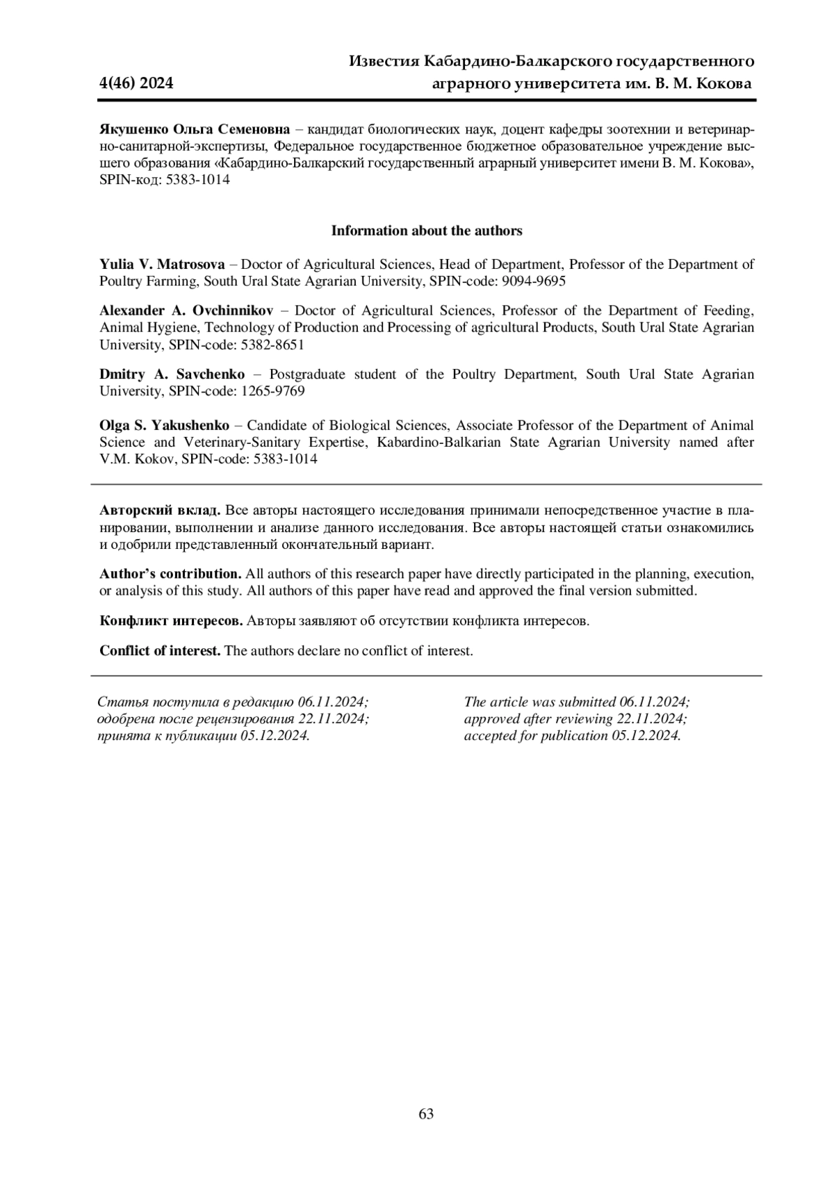 8. 	Мясная продуктивность бычков бестужевской породы при использовании ферментной добавки с включением микроэлементов / О. В. Назарченко, Н. Г. Фенченко, Н. И. Хайруллина [и др.] // Главный зоотехник. 2024. № 6(251). С. 17-29. DOI: 10.33920/sel-03-2406-02 EDN: HMJGML