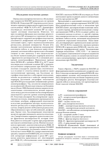 2. Nogueira J. P., Cusi K. Role of insulin resistance in the development of nonalcoholic fatty liver disease in people with type 2 diabetes: from bench to patient care // Diabetes Spectrum. 2024. Vol. 37, № 1. P. 20-28. DOI: 10.2337/dsi23-0013