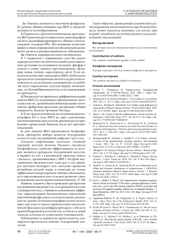 Статья: РЕДКИЙ ВАРИАНТ ИЗОЛИРОВАННОГО ПОРАЖЕНИЯ ЛОПАТОЧНОЙ КОСТИ ПРИ БОЛЕЗНИ ПЕДЖЕТА (КЛИНИЧЕСКИЙ СЛУЧАЙ) (2025)