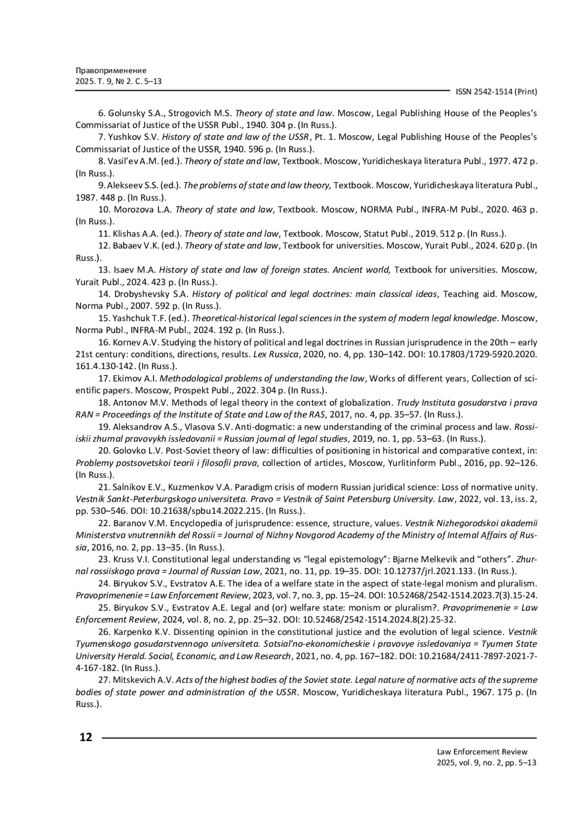 16. Корнев А. В. Изучение истории политических и правовых учений в российском правоведении в ХХ - начале ХХI в.: условия, направления, результаты / А. В. Корнев // Lex russica. - 2020. - № 4. - С. 130-142. - https://doi.org/10.17803/1729-5920.2020.161.4.130-142.