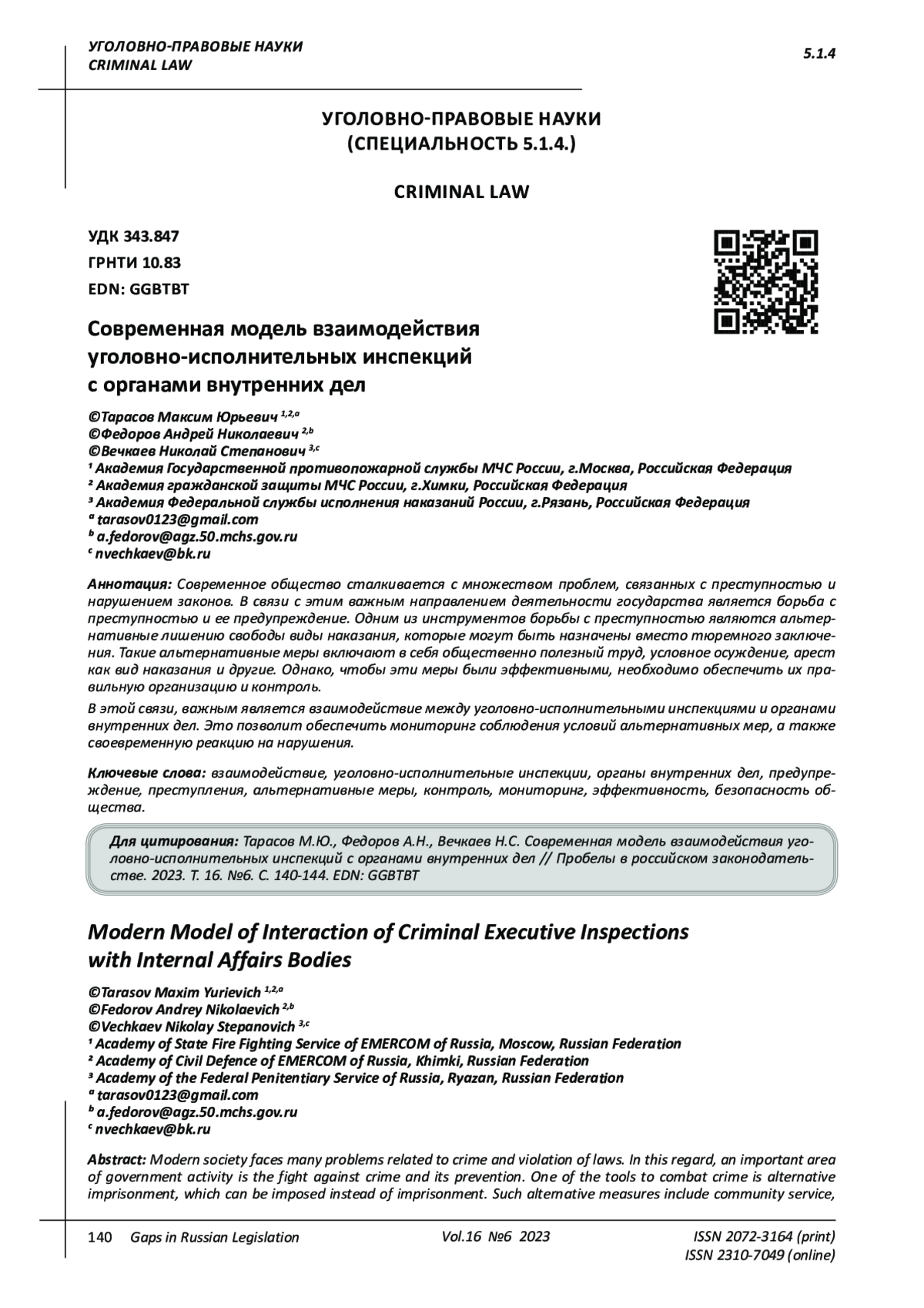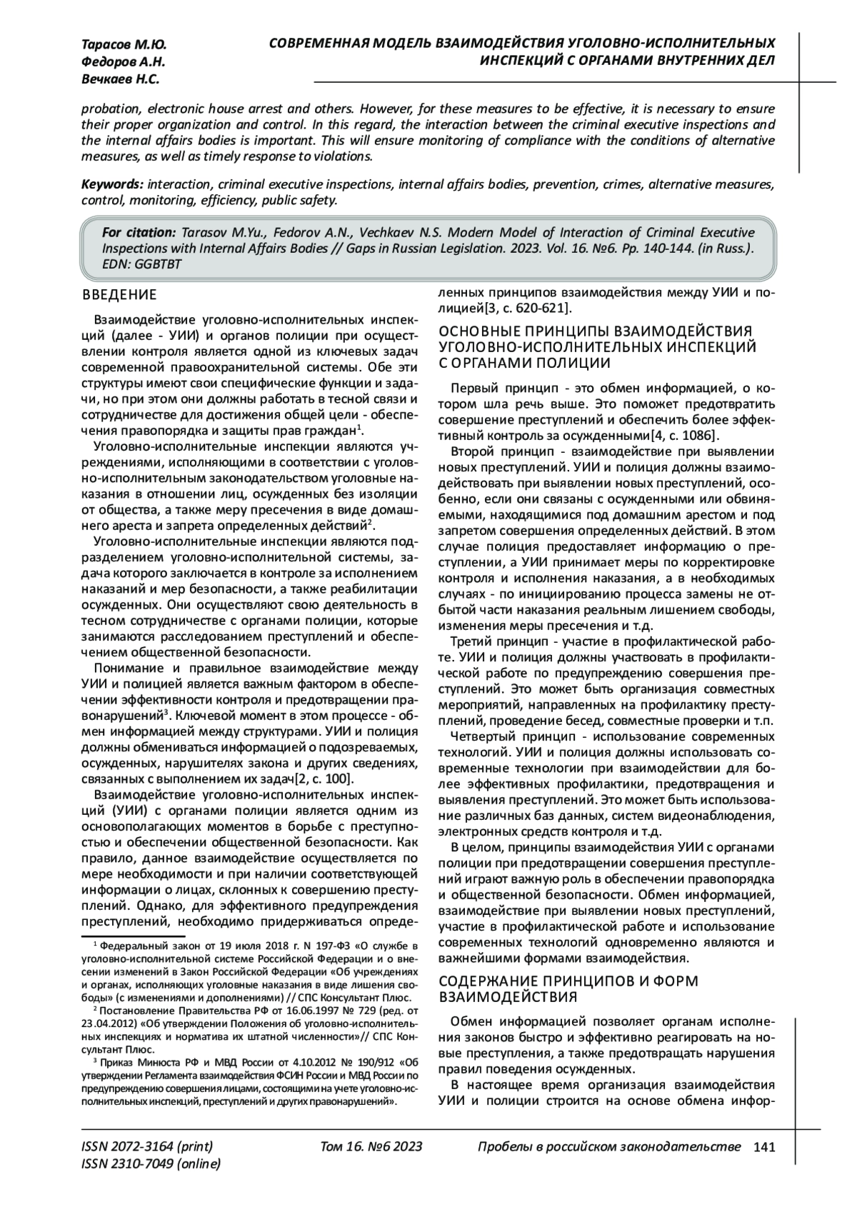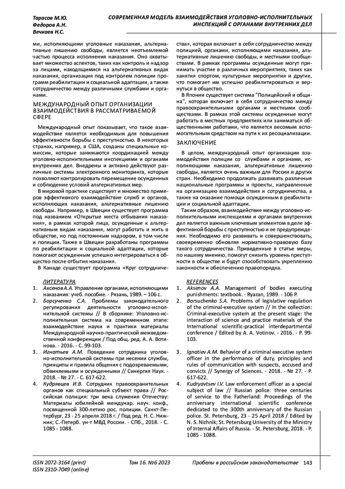 3. 	Игнатьев А.М. Поведение сотрудника уголовно-исполнительной системы при несении службы, принципы и правила общения с подозреваемыми, обвиняемыми и осужденными // Синергия Наук. - 2018. - № 27. - С. 617-622. EDN: YAJINN