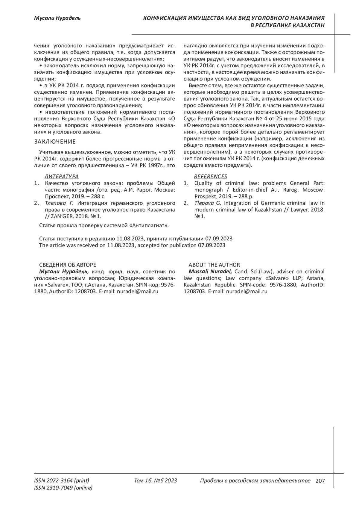 2. Тлепова Г. Интеграция германского уголовного права в современное уголовное право Казахстана // ZAN’GER. 2018. №1.