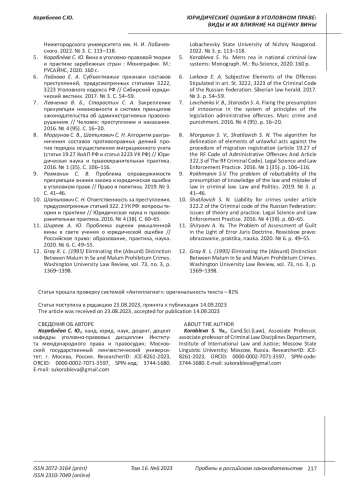5. Кораблёва С. Ю. Вина в уголовно-правовой теории и практике зарубежных стран: Монография. М.: РУСАЙНС, 2020. 160 с. EDN: UWMNJY
