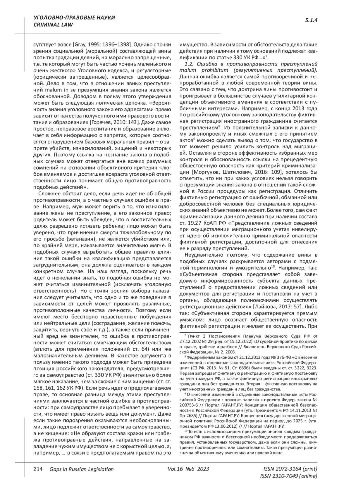 9. Рахманин С. В. Проблема опровержимости презумпции знания закона и юридическая ошибка в уголовном праве // Право и политика. 2019. № 3. С. 41-46. EDN: ZCITET