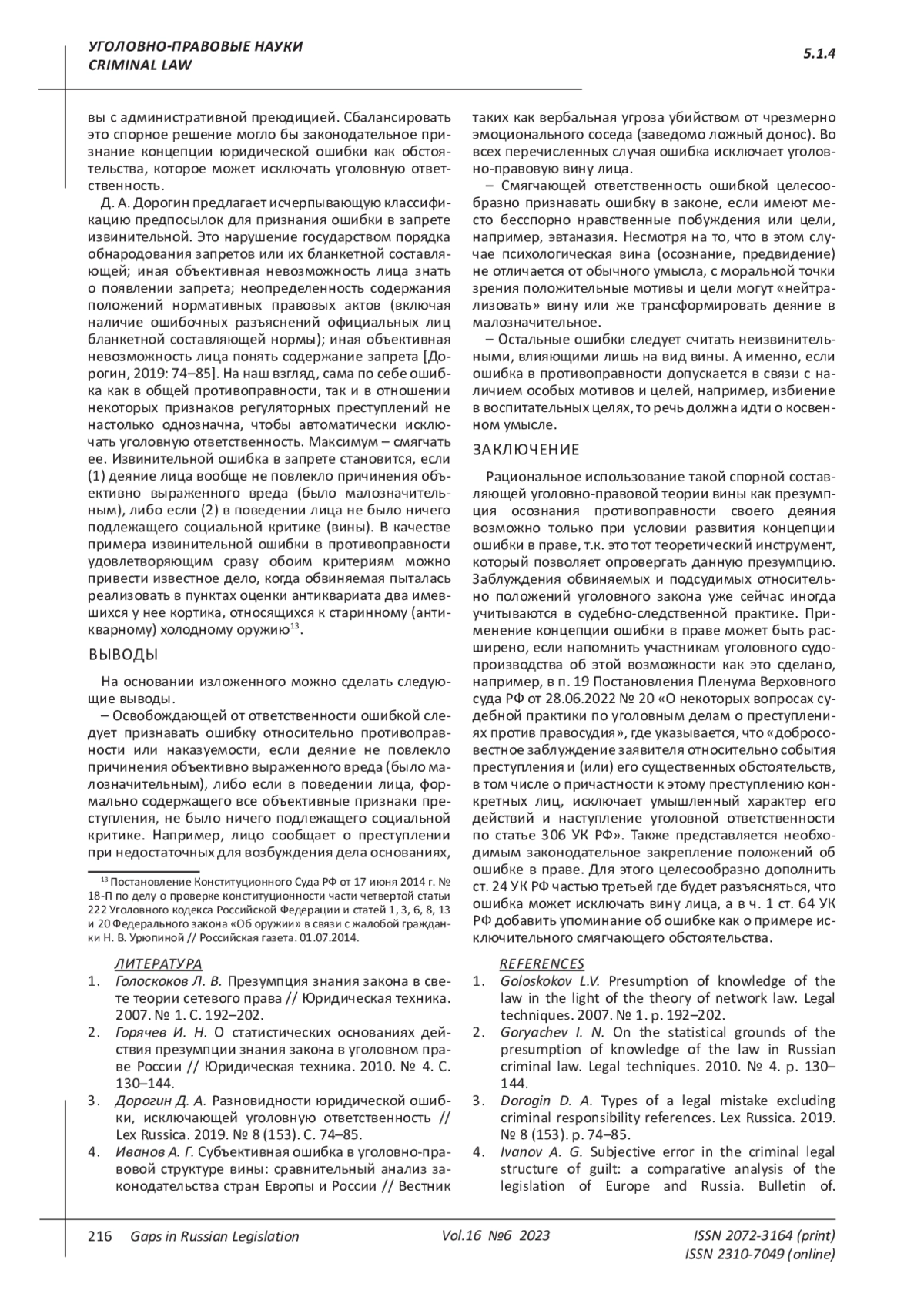 3. Дорогин Д. А. Разновидности юридической ошибки, исключающей уголовную ответственность // Lex Russica. 2019. № 8 (153). С. 74-85. EDN: CGQGQS