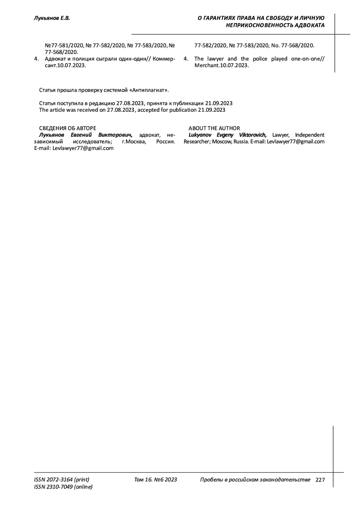 4. Адвокат и полиция сыграли один-один// Коммерсант.10.07.2023.