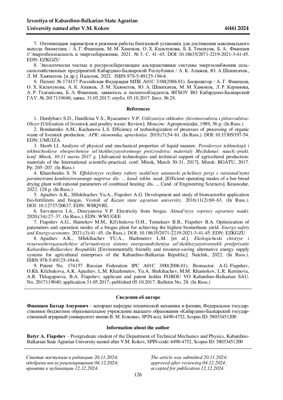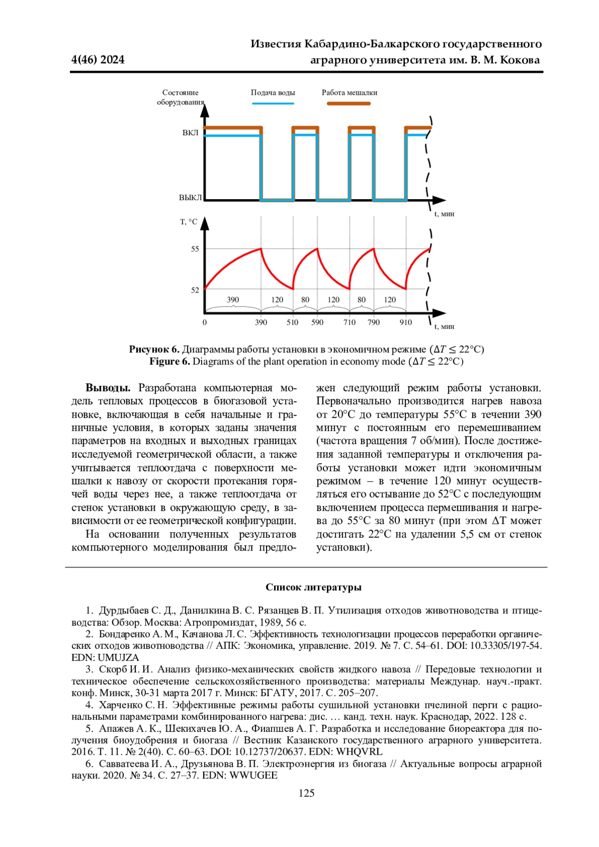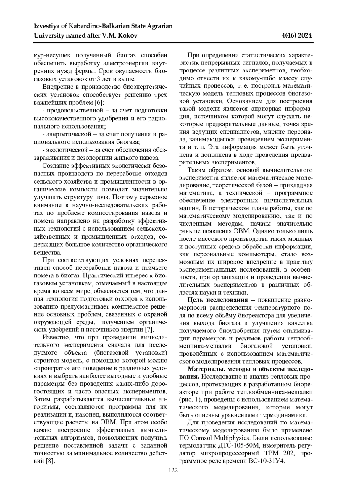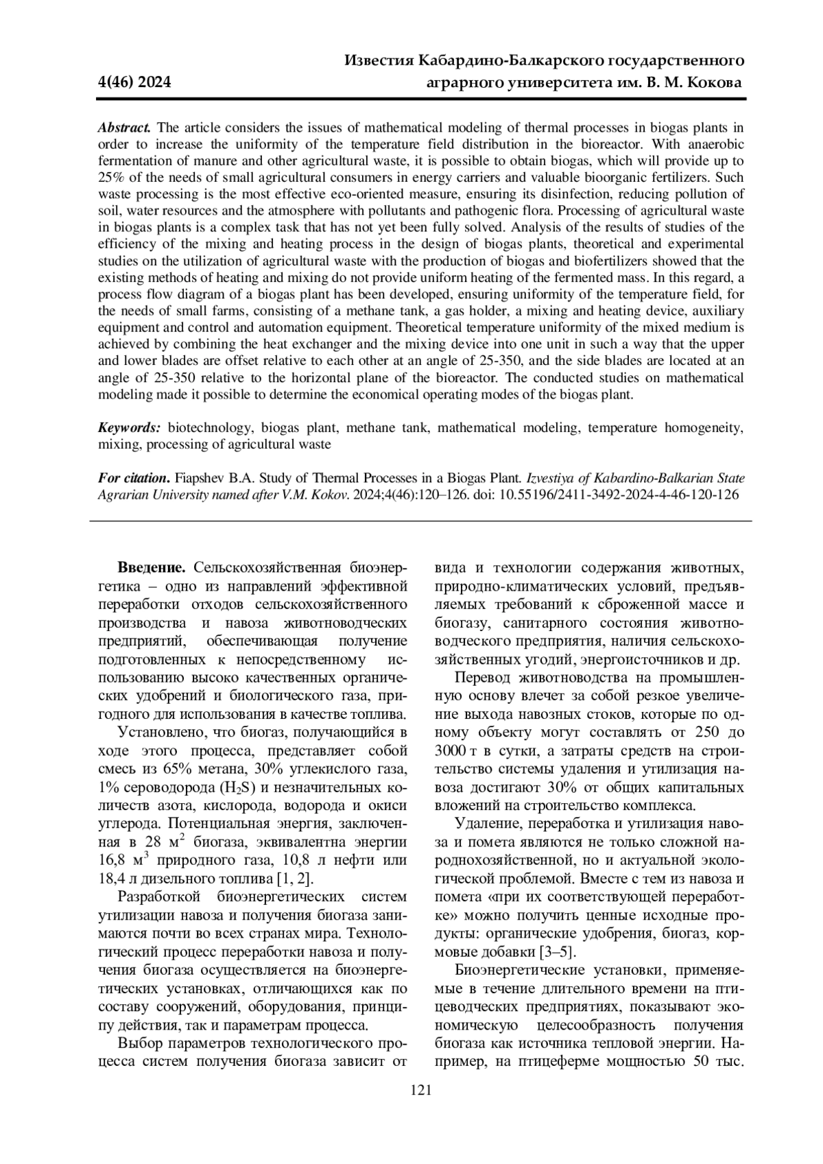 ФИАПШЕВ Б. А. ИССЛЕДОВАНИЕ ТЕПЛОВЫХ ПРОЦЕССОВ В БИОГАЗОВОЙ УСТАНОВКЕ // ИЗВЕСТИЯ КАБАРДИНО-БАЛКАРСКОГО ГОСУДАРСТВЕННОГО АГРАРНОГО УНИВЕРСИТЕТА ИМ. В. М. КОКОВА. 2024. № 4 (46)
