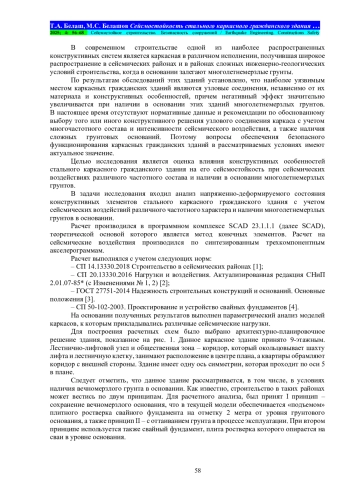 Введение. В настоящее время актуальна задача оценки сейсмостойкости стальных каркасных зданий, учитывая различные факторы, влияющие на их поведение при землетрясениях.