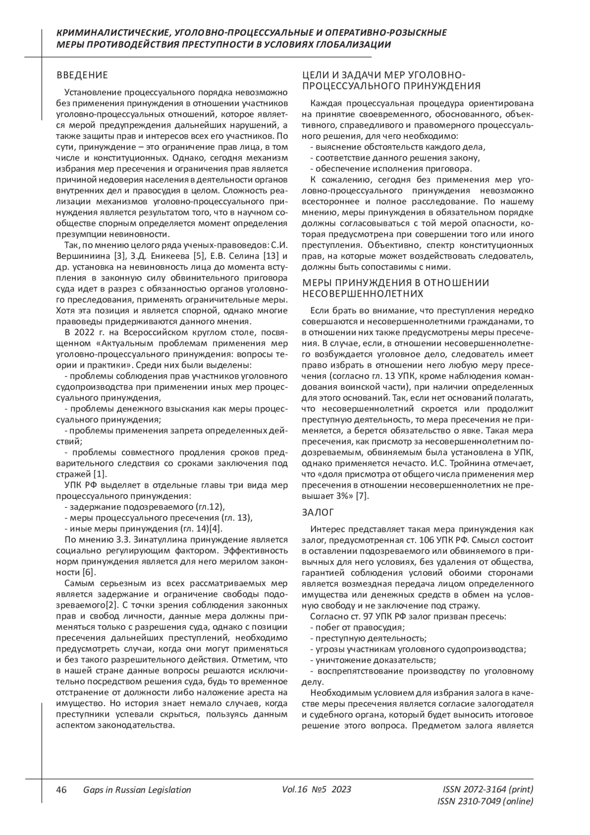 3. Вершинина С.И. Нормативно-правовая сущность уголовно-процессуального принуждения: монография. М.: Юрлитинформ, 2017. - 367 с. EDN: XGONNF