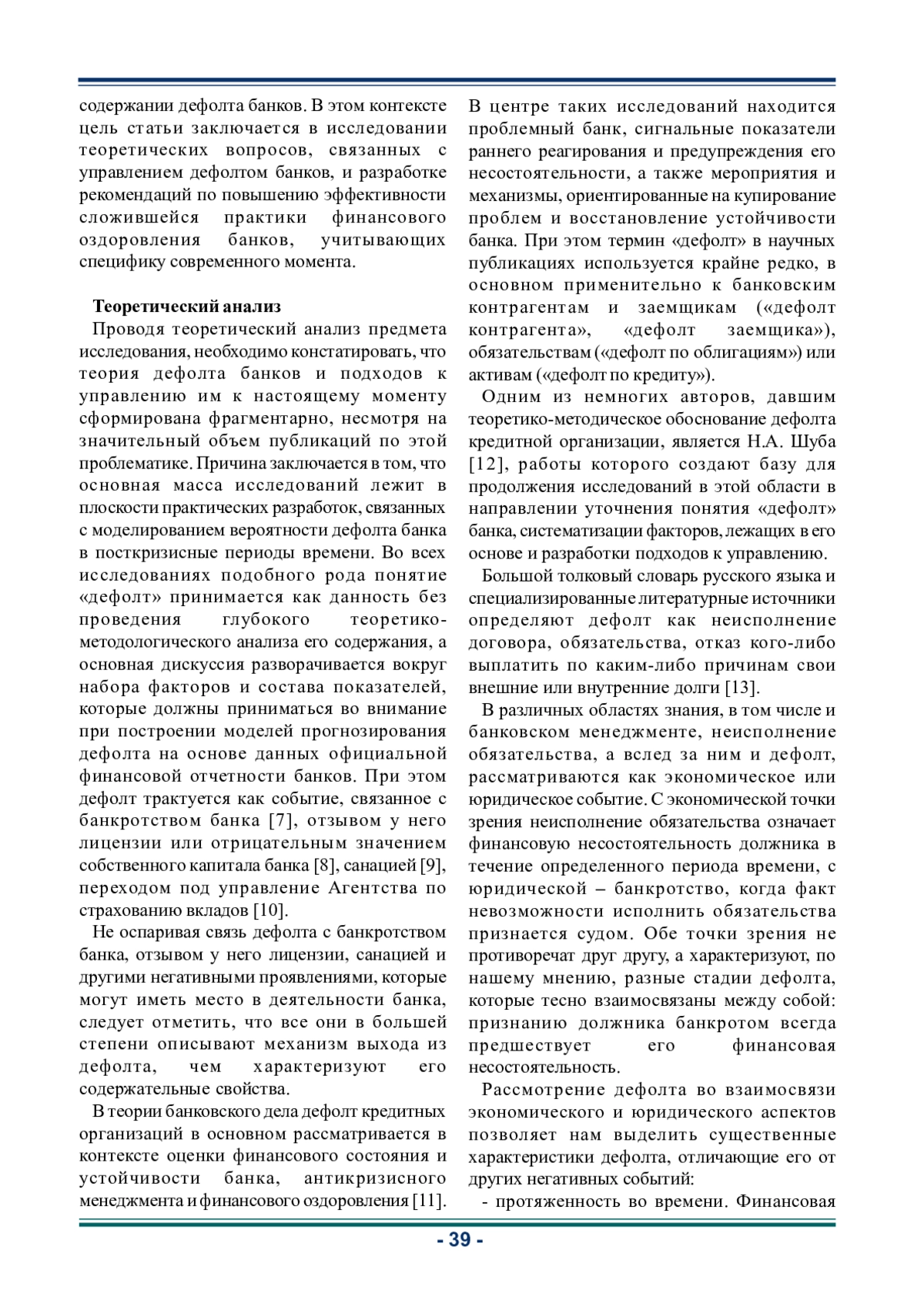 8. Зубарев А.В., Бекирова О.А. Анализ факторов банковских дефолтов 2013-2019 годов // Экономическая политика. 2020. № 3. URL: https://cyberleninka.ru/article/n/analiz-faktorov-bankovskih-defoltov-2013-2019-godov (дата обращения: 13.11.2024). EDN: VUVRKG