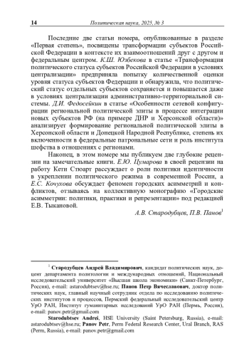 Вступительное слово от редакции журнала “ПОЛИТИЧЕСКАЯ НАУКА” к выпуску №3 (2025г.)