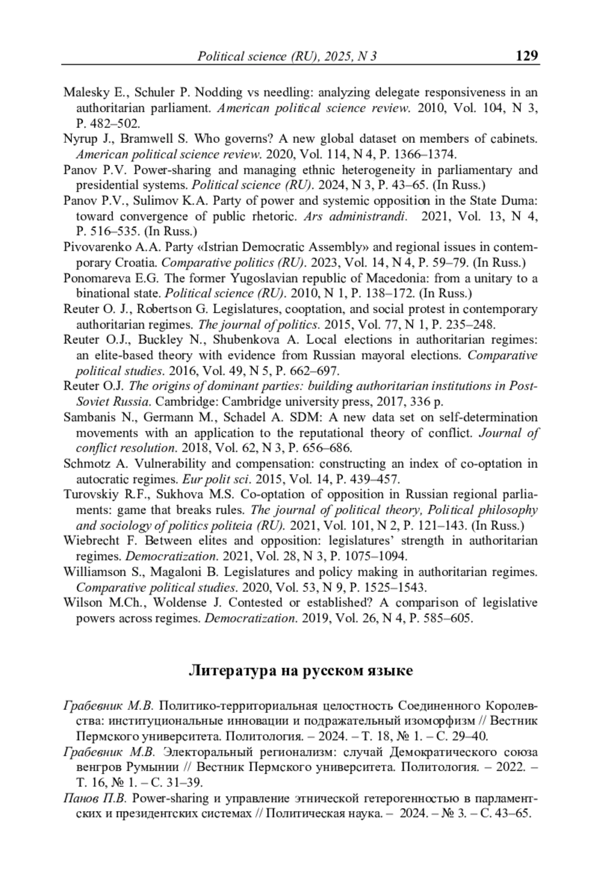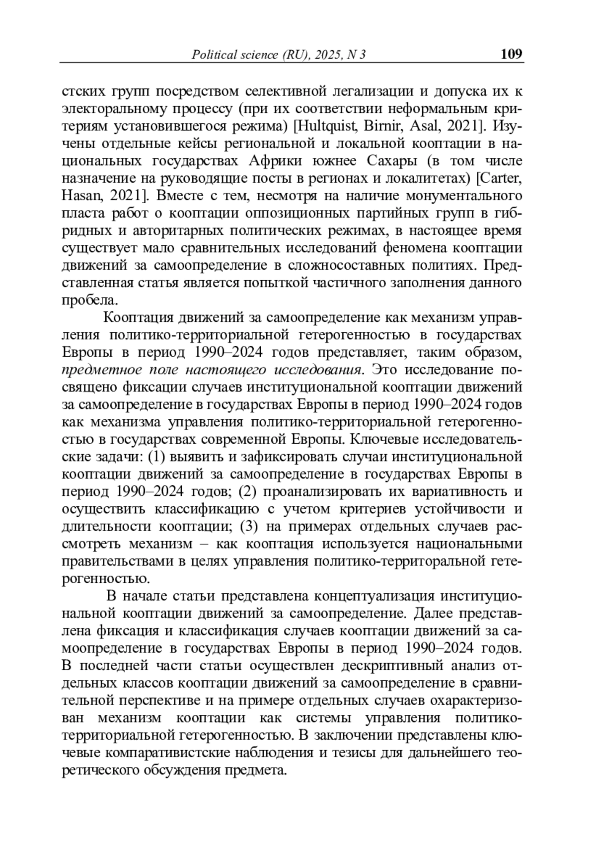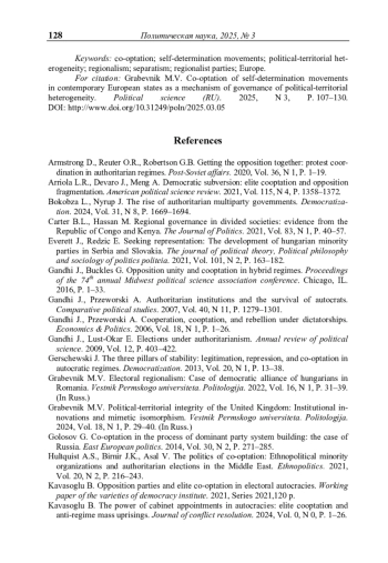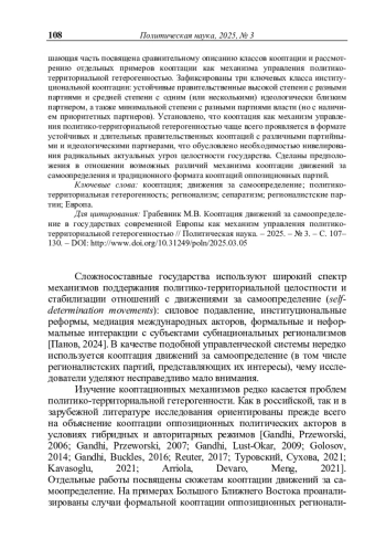 ГРАБЕВНИК М. В. КООПТАЦИЯ ДВИЖЕНИЙ ЗА САМООПРЕДЕЛЕНИЕ В ГОСУДАРСТВАХ СОВРЕМЕННОЙ ЕВРОПЫ КАК МЕХАНИЗМ УПРАВЛЕНИЯ ПОЛИТИКО-ТЕРРИТОРИАЛЬНОЙ ГЕТЕРОГЕННОСТЬЮ // ПОЛИТИЧЕСКАЯ НАУКА. 2025. №3