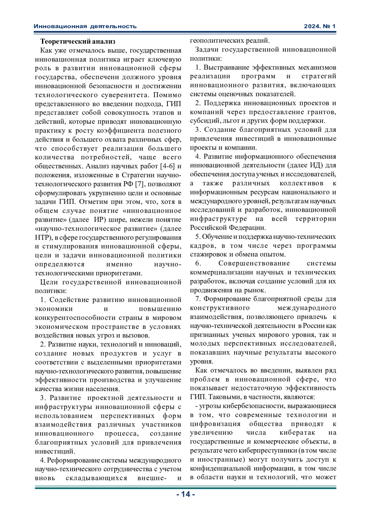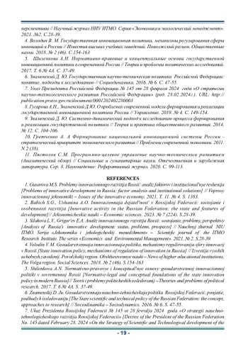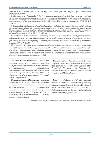 2. Бабич С.Г., Ушанина А.О. Инновационная деятельность в Российской Федерации: состояние и особенности развития // Экономические науки. 2023. № 7 (224). С.28-39.