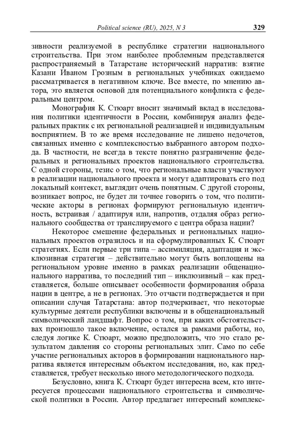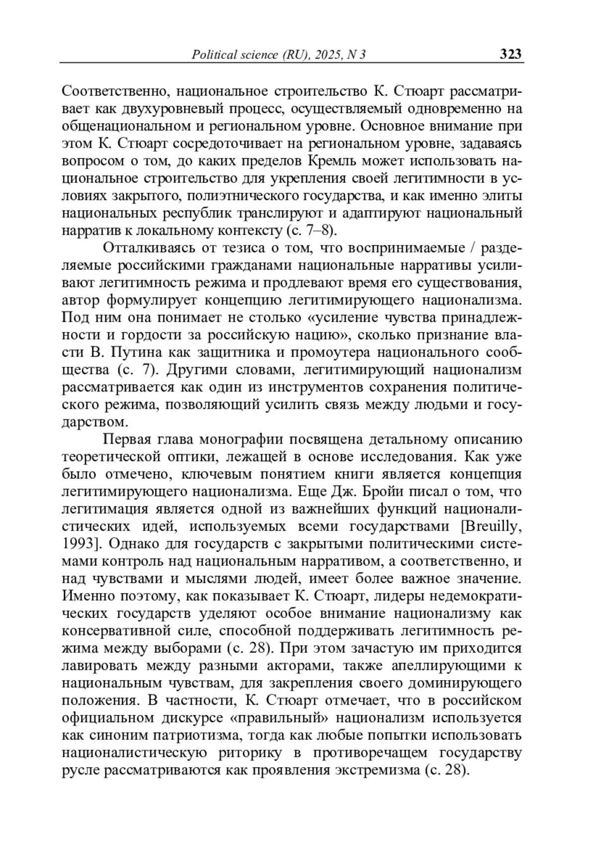 Рец. на кн.: Stewart K. L. Legitimating nationalism. Political identity in Russia’s ethnic republics. – Madison, Wisconsin: The University of Wisconsin Press, 2024. – 293 p.