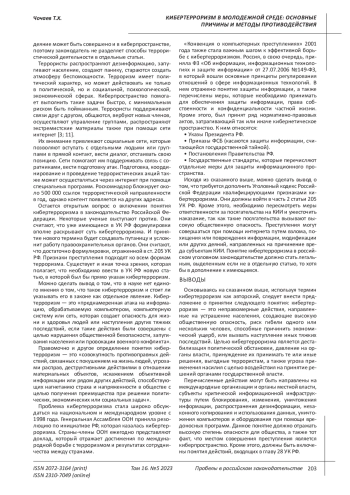 7. Теуважуков А.Х., Хитиева А.Ж. Совершение кибертеррористических преступлений в сети интернет: пути выявления и противодействия // Журнал прикладных исследований. 2022. Т. 1. № 9. С. 72-75. EDN: HCHBZL