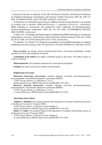 10. Демидов А. С., Быстров Н. С. Перспективы и проблемы применения BIM-технологий в транспортном строительстве // Инновационный транспорт. 2021. № 4(42). С. 43-45. DOI: 10.20291/2311-164X-2021-4-43-45 EDN: BGKNZW