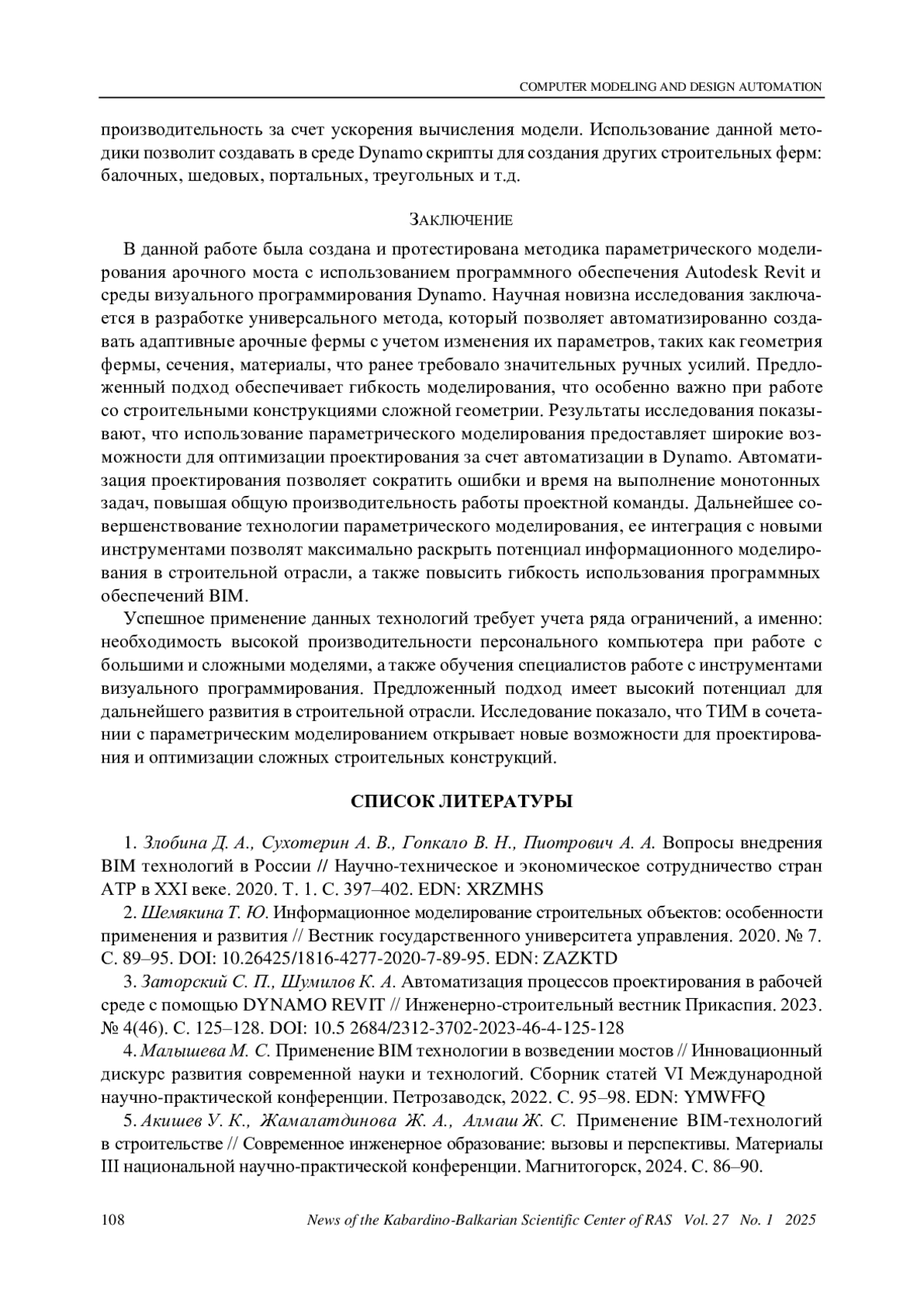 3. Заторский С. П., Шумилов К. А. Автоматизация процессов проектирования в рабочей среде с помощью DYNAMO REVIT // Инженерно-строительный вестник Прикаспия. 2023. № 4(46). С. 125-128. 10.5 2684/2312-3702-2023-46-4-125-128. DOI: 10.52684/2312-3702-2023-46-4-125-128 EDN: KBNRJE