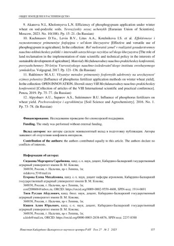 9. Аканова Н. И., Холомьева Л. Н. Эффективность применения фосфогипса под озимую пшеницу на дерново-подзолистых почвах // Евразийский союз ученых. М., 2023. № 10(108). С. 15-21. EDN: DSWRNV