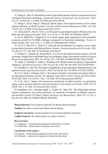 31. Ai X., Zhang Y. Modeling analysis of intelligent logistics distribution path of agricultural products under internet of things environment. Springer International Publishing. 2019.Vol. 279. Pp. 322-329. DOI: 10.1007/978-3-030-19086-6