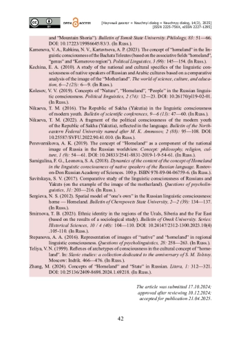 16. Степанова А. А. Репрезентация образов «родной» и «родина» в региональном языковом сознании / А. А. Степанова // Вопросы психолингвистики. - 2016. - № 28. - С. 258-263.