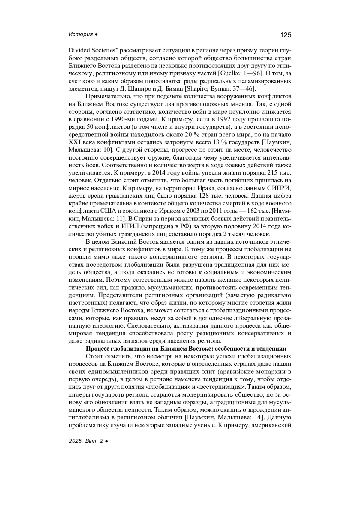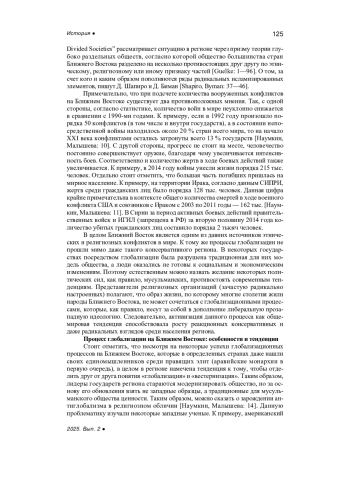 10. Наумкин В.В. Исламский радикализм и внешнее вмешательство в глубоко разделенных обществах Ближнего Востока // Конфликты и войны XXI века (Ближний Восток и Северная Африка). М.: ИВ РАН, 2015. С. 25-53. EDN: WDXUEH