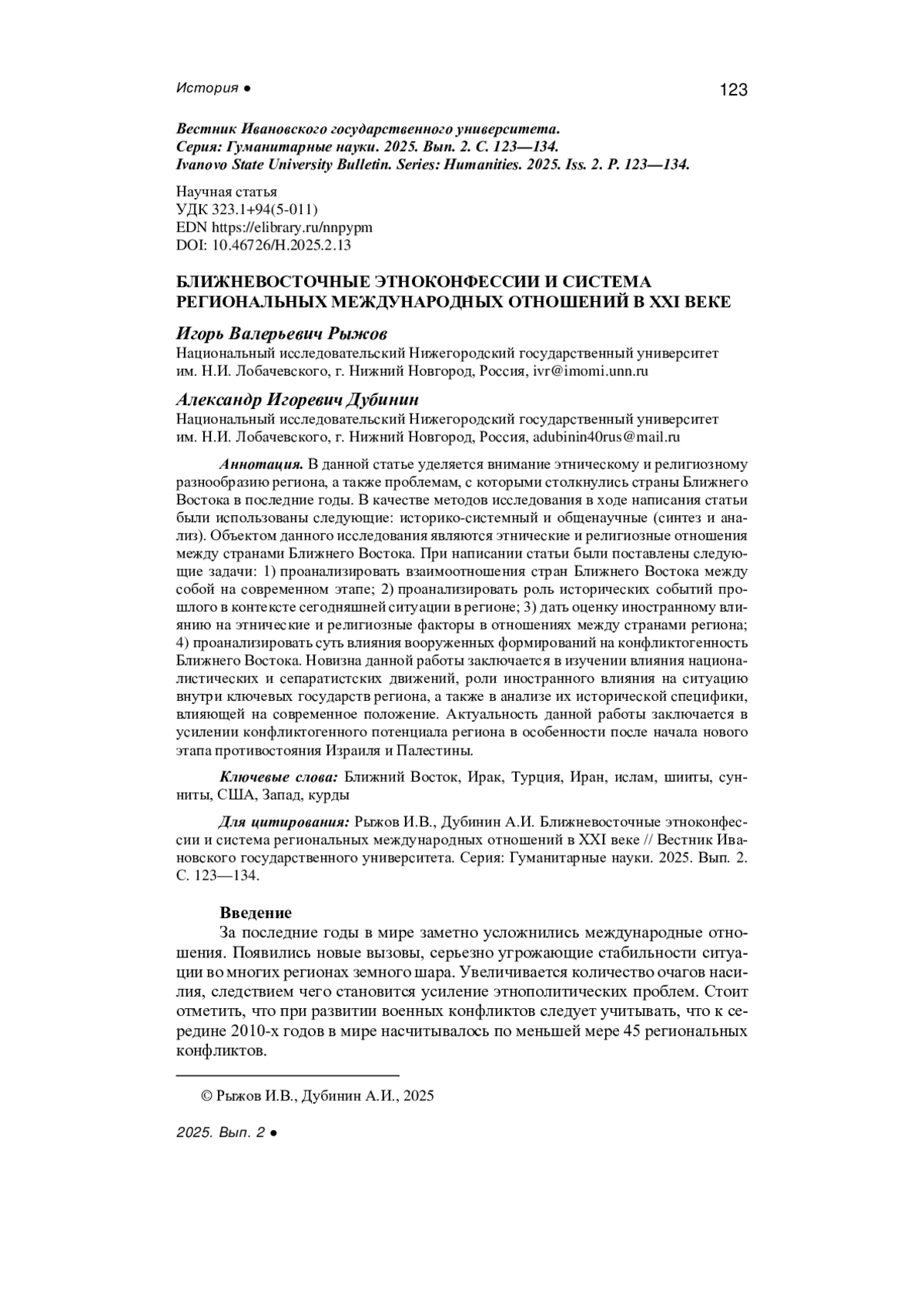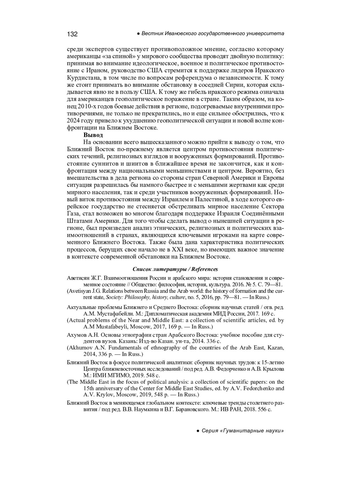 12. Рыжов И.В. Бородина М.Ю., Савичева Е.М. Ближний Восток: поиск новой архитектуры безопасности в меняющемся мире // Вестник Санкт-Петербургского университета. Востоковедение и африканистика, 2023. № 15. С. 418-435. EDN: HXMSAY