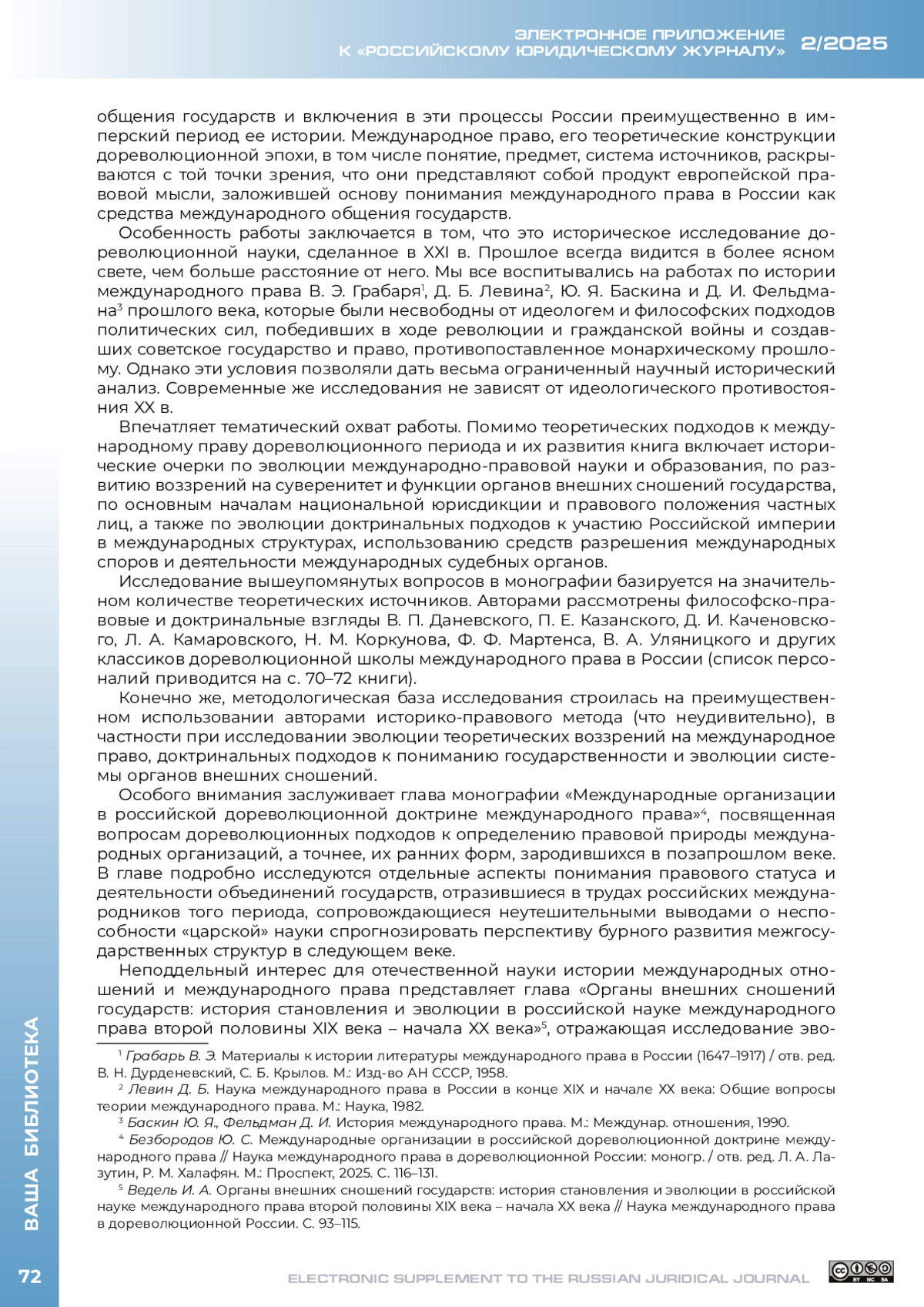 5. Левин Д. Б. Наука международного права в России в конце XIX и начале ХХ века: Общие вопросы теории международного права. М.: Наука, 1982. 197 с.