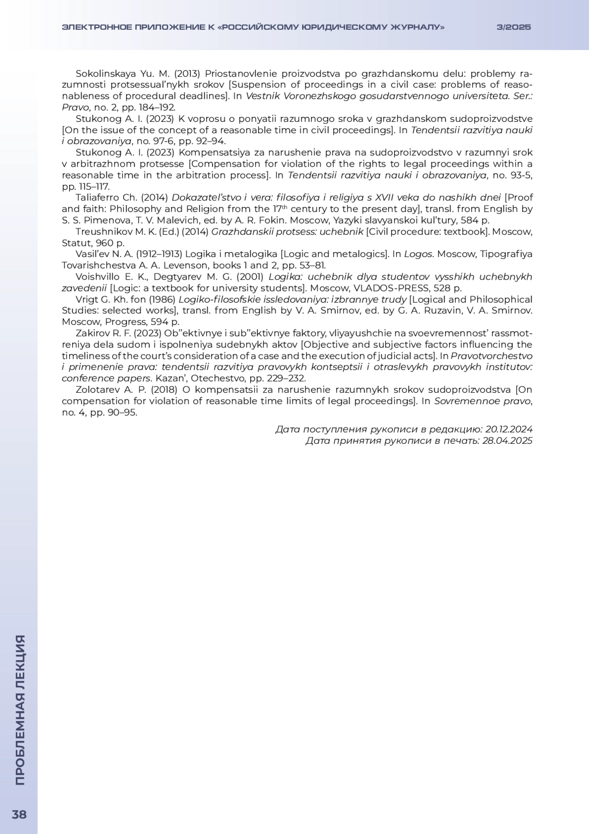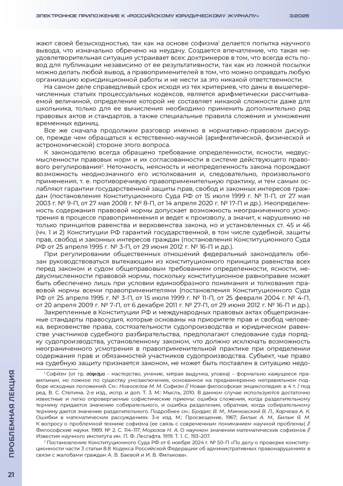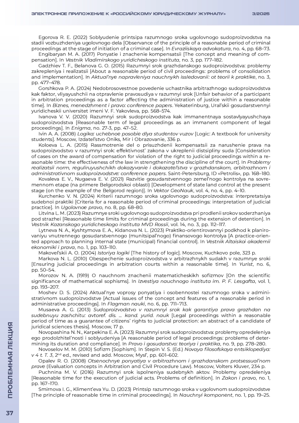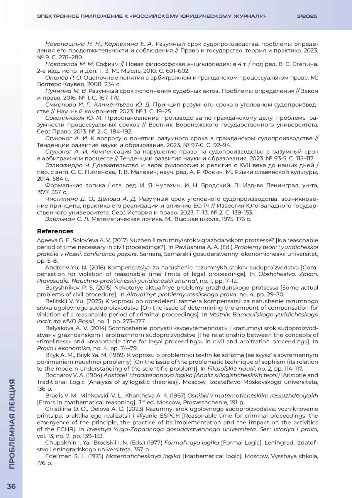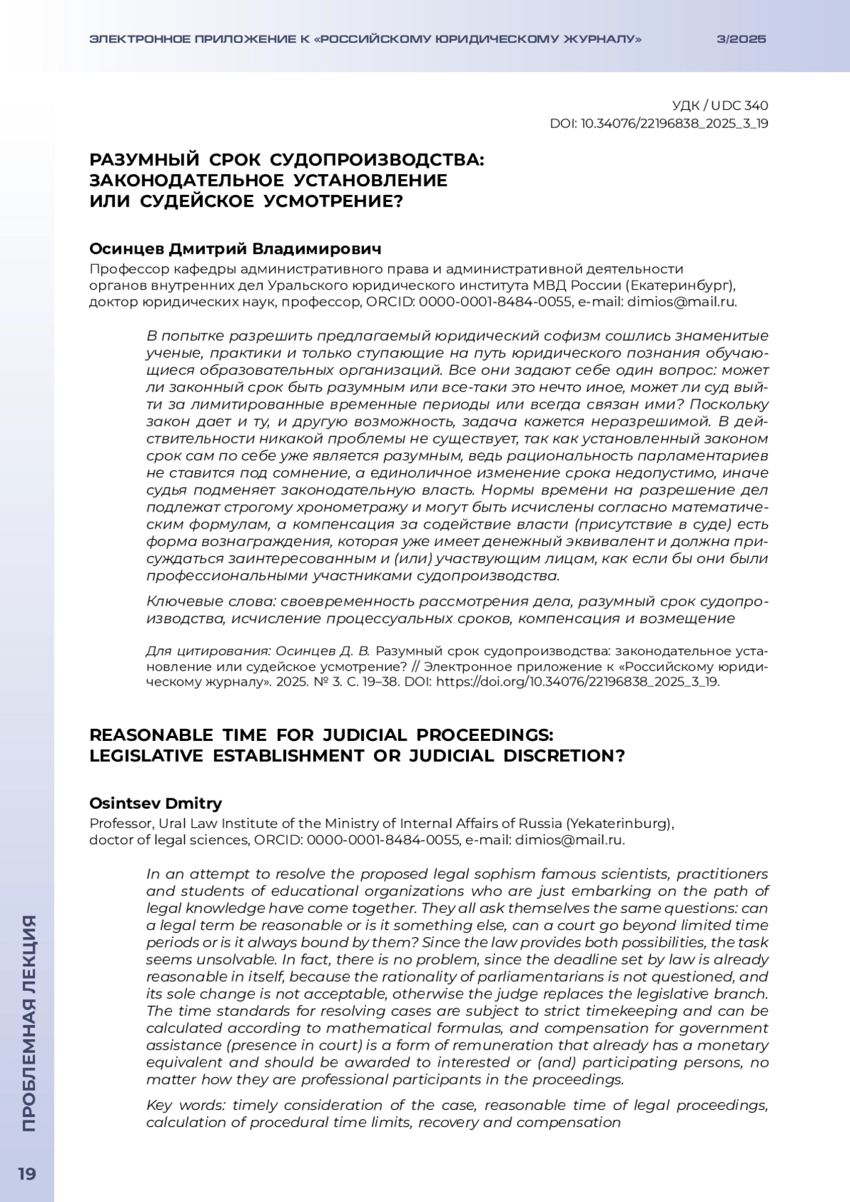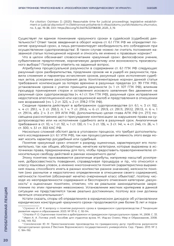 ОСИНЦЕВ Д. В. РАЗУМНЫЙ СРОК СУДОПРОИЗВОДСТВА: ЗАКОНОДАТЕЛЬНОЕ УСТАНОВЛЕНИЕ ИЛИ СУДЕЙСКОЕ УСМОТРЕНИЕ? // ЭЛЕКТРОННОЕ ПРИЛОЖЕНИЕ К РОССИЙСКОМУ ЮРИДИЧЕСКОМУ ЖУРНАЛУ. 2025. № 3