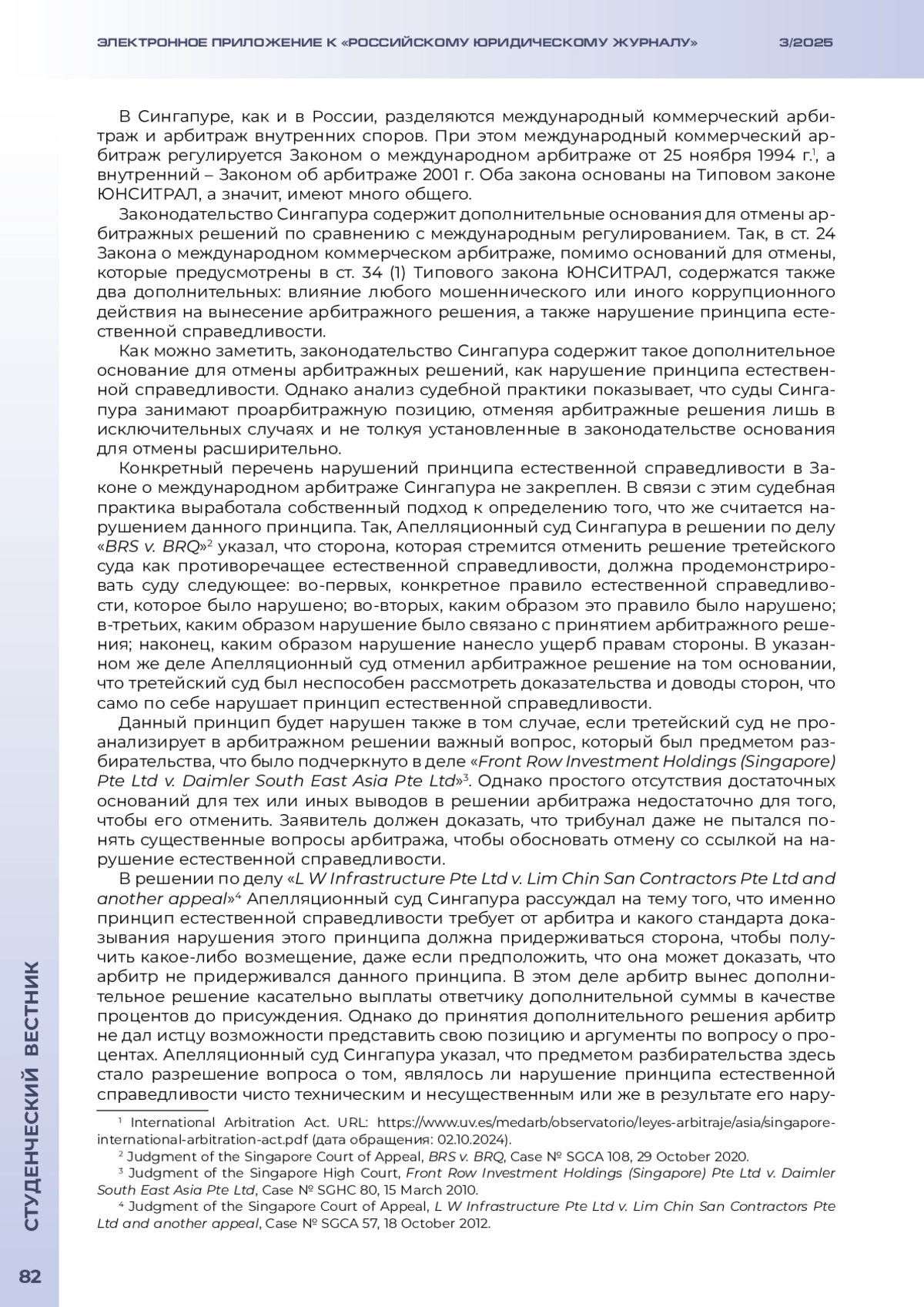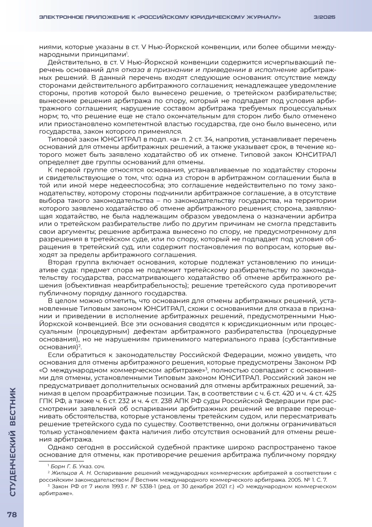 Статья: ПРОЦЕДУРНЫЕ И СУБСТАНТИВНЫЕ ОСНОВАНИЯ ДЛЯ ОТМЕНЫ АРБИТРАЖНЫХ РЕШЕНИЙ В РАЗЛИЧНЫХ ПРАВОПОРЯДКАХ (2025)