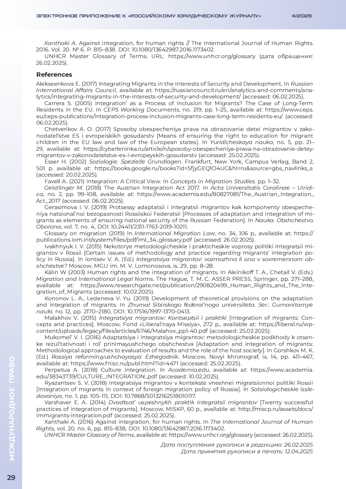 13. Glossary on migration // International Migration Law. 2019. № 34. 106 p. URL: https://publications. iom.int/system/files/pdf/iml_34_glossary.pdf (дата обращения: 26.02.2025).