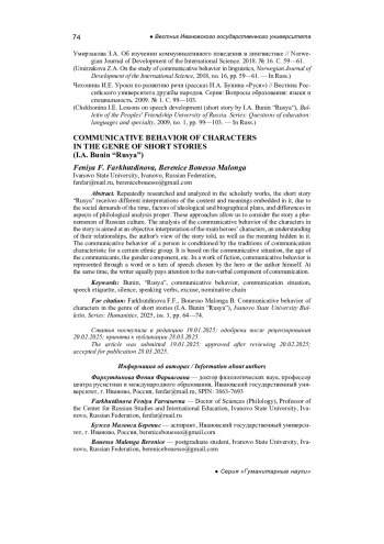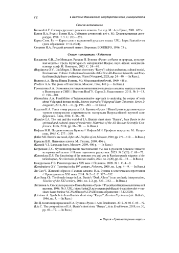 Bogdanova O.V., Liu Mingze. I. Bunin’s short story “Rusya”: subject and nature, cultural model, Environment. Culture: Collection of materials of the First All-Russian Scientific and Practical transdisciplinary conference, Niznyi Novgorod, 2023, pp. 24-40. - In Russ.