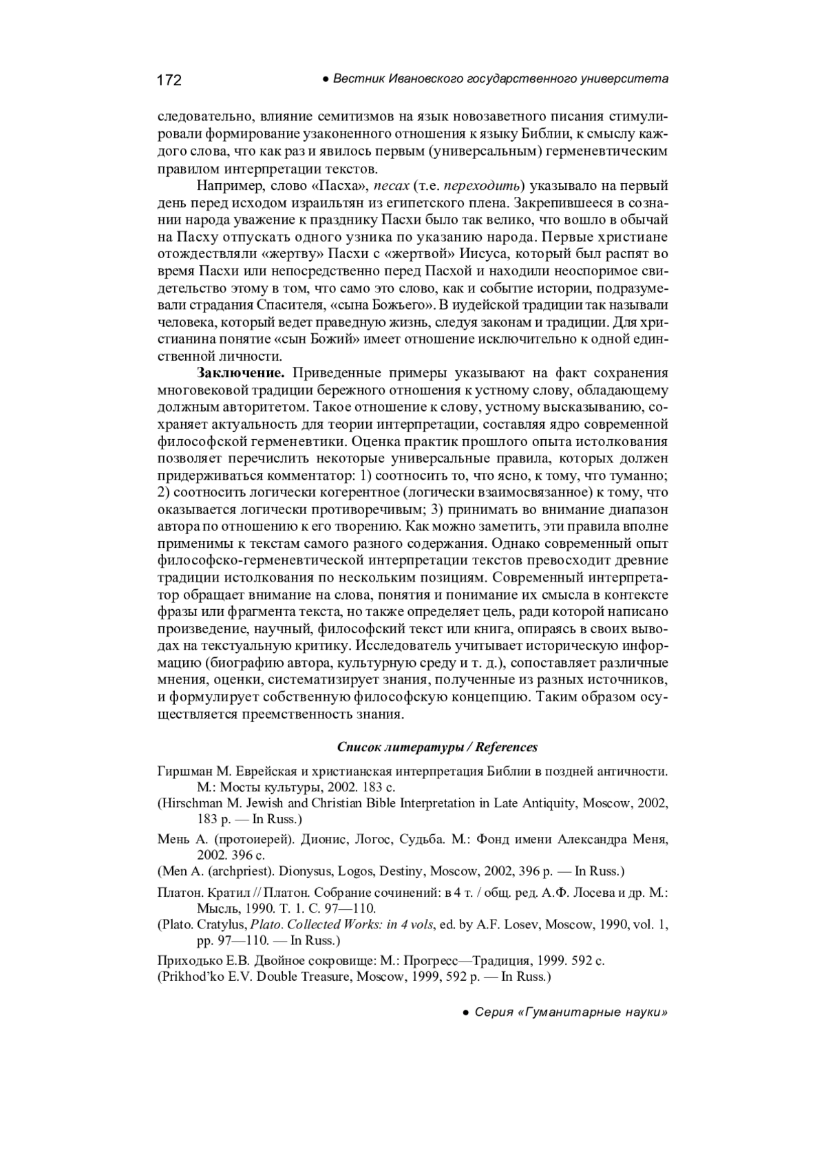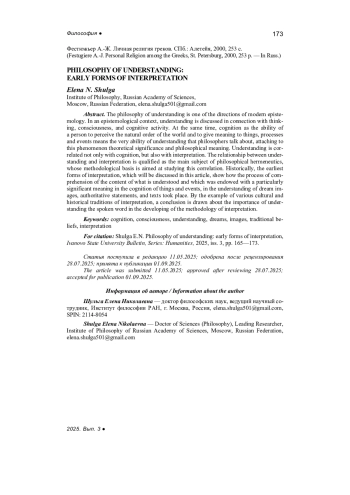 ШУЛЬГА Е. Н. ФИЛОСОФИЯ ПОНИМАНИЯ: РАННИЕ ФОРМЫ ИНТЕРПРЕТАЦИИ // ВЕСТНИК ИВАНОВСКОГО ГОСУДАРСТВЕННОГО УНИВЕРСИТЕТА. СЕРИЯ: ГУМАНИТАРНЫЕ НАУКИ. 2025. № 3