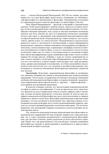 9. Инюшина И.А. Философия сознания М.К. Мамардашвили как духовное упражнение: пайдейя и протрептика // Среднеруский вестник общественных наук. 2014. № 5. С. 15-19.