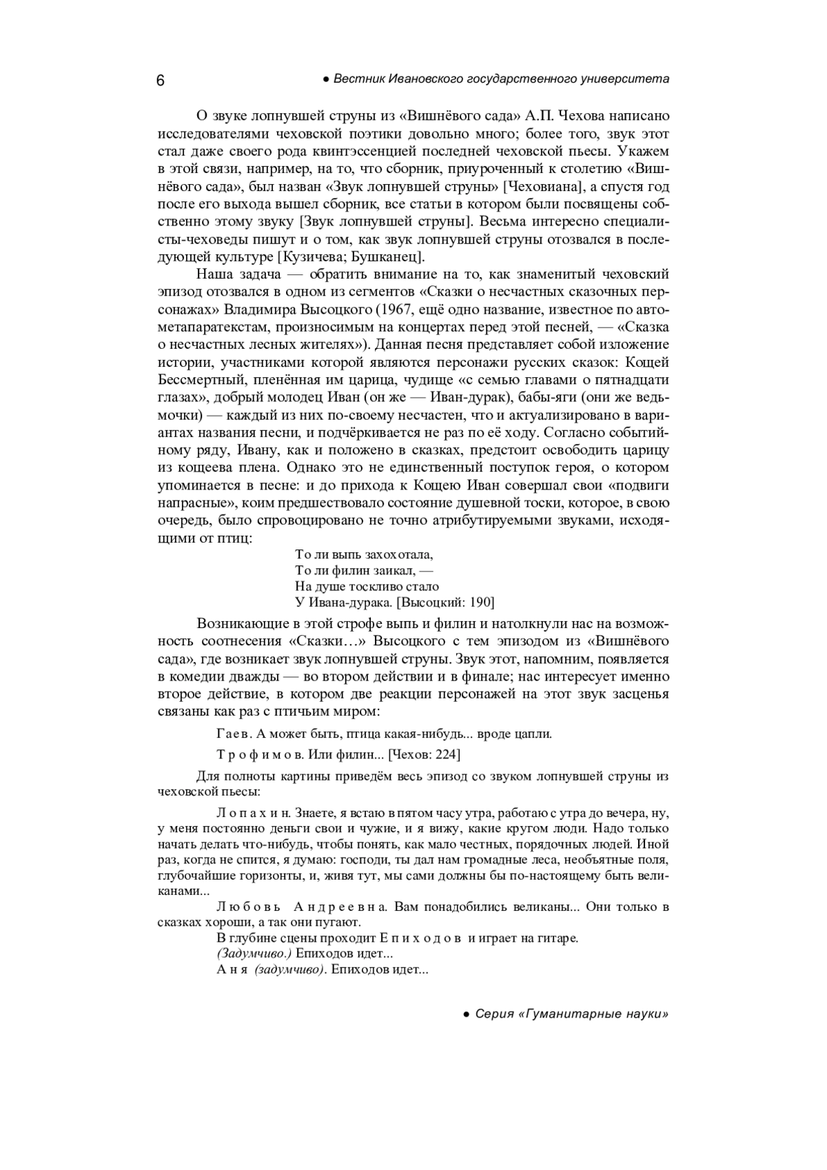 5. Гончарова Н.Н. Образ прохожего в “Вишнёвом саде” А.П. Чехова: литературный, житийный и библейский аспекты // Вестник ЮУрГУ. Серия Лингвистика. 2021. Т. 18, № 4. С. 11-17. EDN: LGLTMF