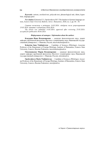 5. Ополовникова М.В., Кокурина И.В. Функции логических частиц в креолизованном тексте (на материале современной карикатуры) // Ученые записки Петрозаводского государственного университета. 2021. Т. 43, № 5. С. 48-57. EDN: MYVDEE