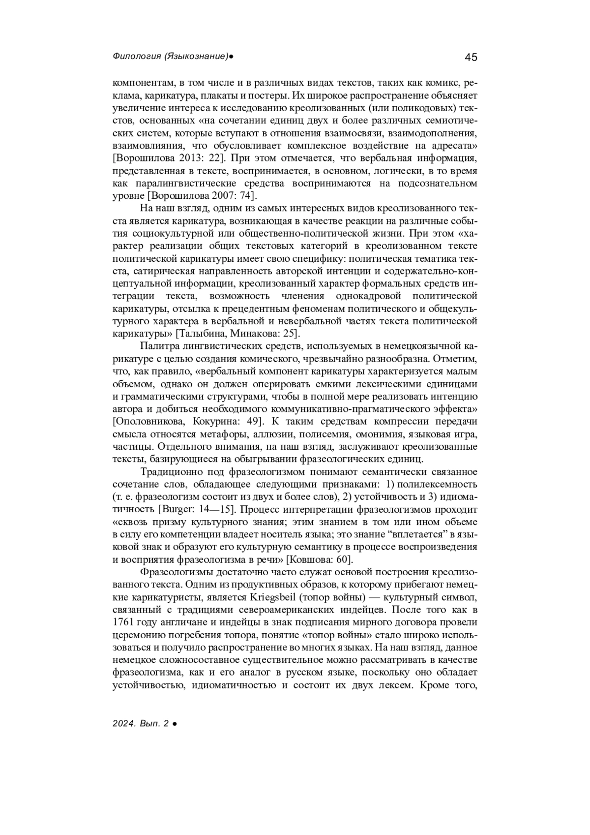 2. Ворошилова М.Б. Политический креолизованный текст: ключи к прочтению. Екатеринбург: УрГПУ, 2013. 194 с. EDN: QIRMSX