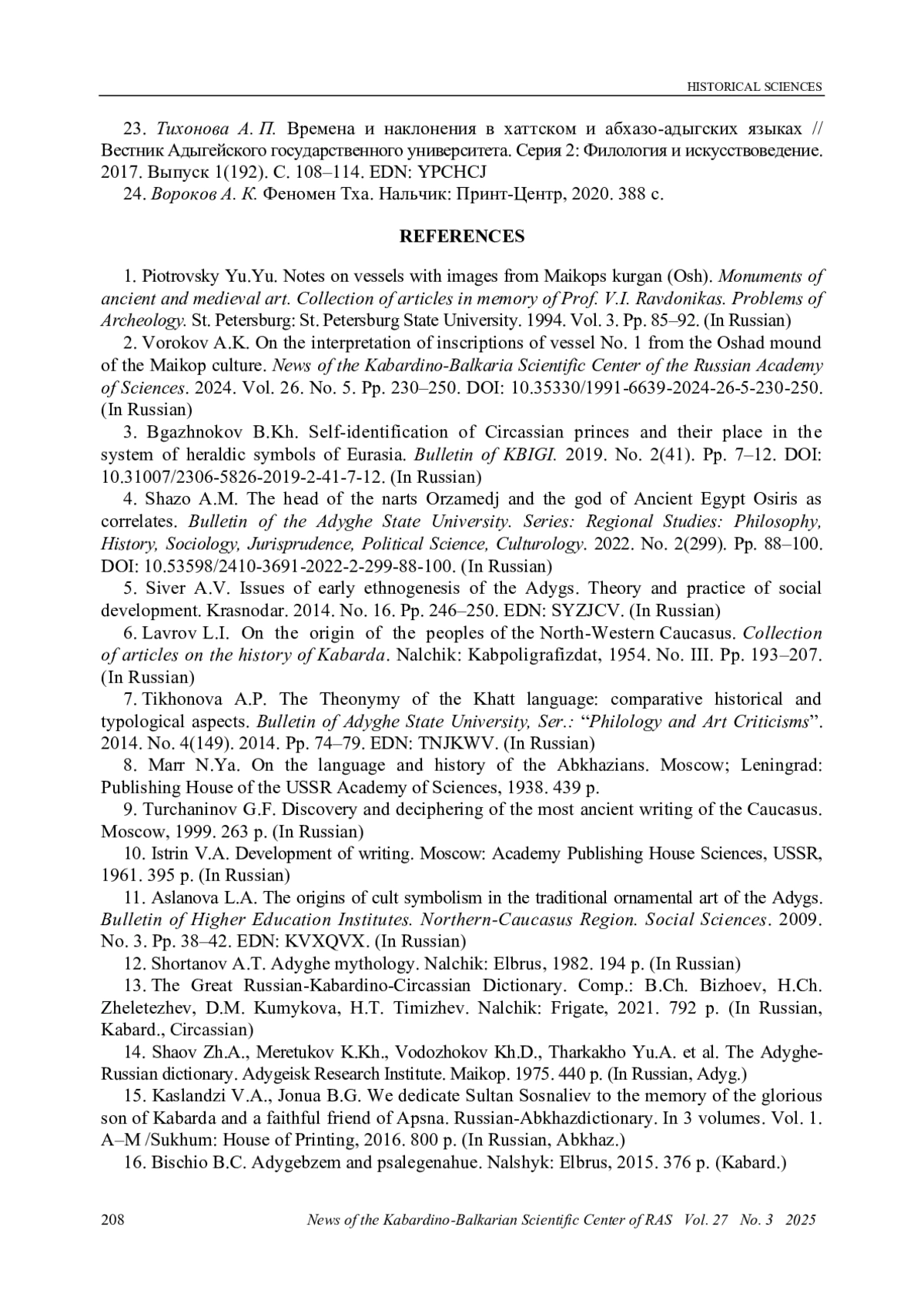 3. Бгажноков Б. Х. Самоидентификация черкесских князей и их место в системе геральдических символов Евразии // Вестник КБИГИ. 2019. № 2(41). С. 7-12. DOI: 10.31007/2306-5826-2019-2-41-7-12