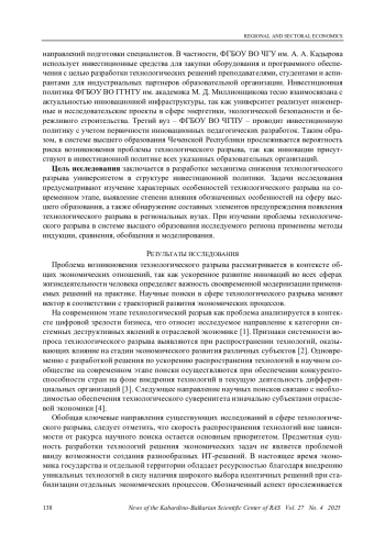 Цель исследования - изучить проблему технологического разрыва в структуре регионального высшего образования и современные направления научных поисков при ее решении.