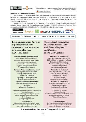 Рассматривается вопрос формирования и развития трансрегиональных отношений федеральных земель Австрии со странами и регионами Востока. Уделяется внимание взаимодействию земель с федеральным правительством в сфере формирования региональных внешнеполитических стратегий. Представлены результаты анализа нормативных основ международной и внешнеполитической деятельности регионов Австрии (проведено исследование национального законодательства). Поднимается вопрос о традиционных тесных связях австрийских регионов с партнерами из сопредельных государств. Отдельно рассмотрено партнерство с отдаленными восточными территориями: китайскими провинциями, японскими префектурами, Ираном, Турцией, Израилем, государствами Ближнего Востока. Исследование базируется на авторской комплексной методологии, включающей принципы динамизма, системности и целостности, историко-системный и историко-сравнительный подходы, а также теоретические основы теории многоуровневого управления и федерализма. Установлено, что приоритетным партнером для многих австрийских земель является Китай. Показано, что при этом в качестве партнеров выступают разные провинции Китая в соответствии с ресурсной и инфраструктурной базой регионов Австрии.