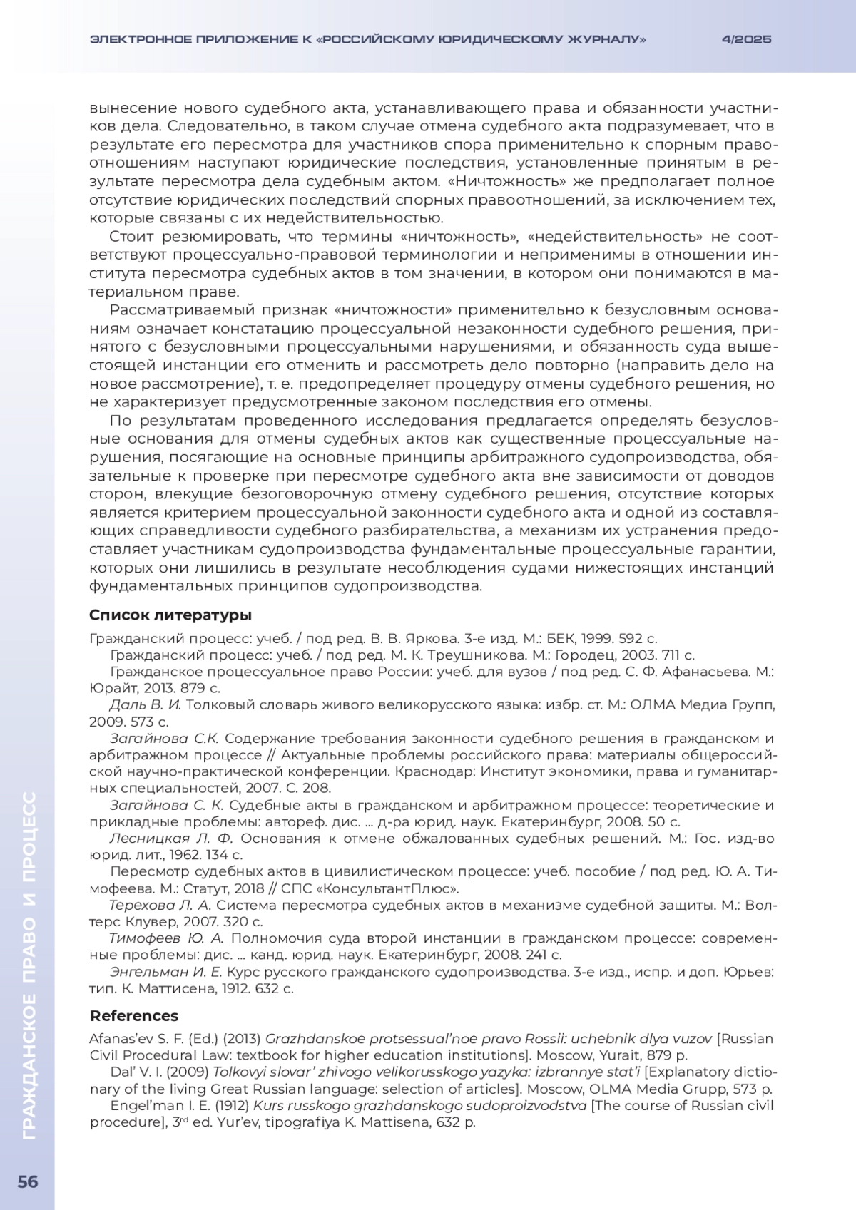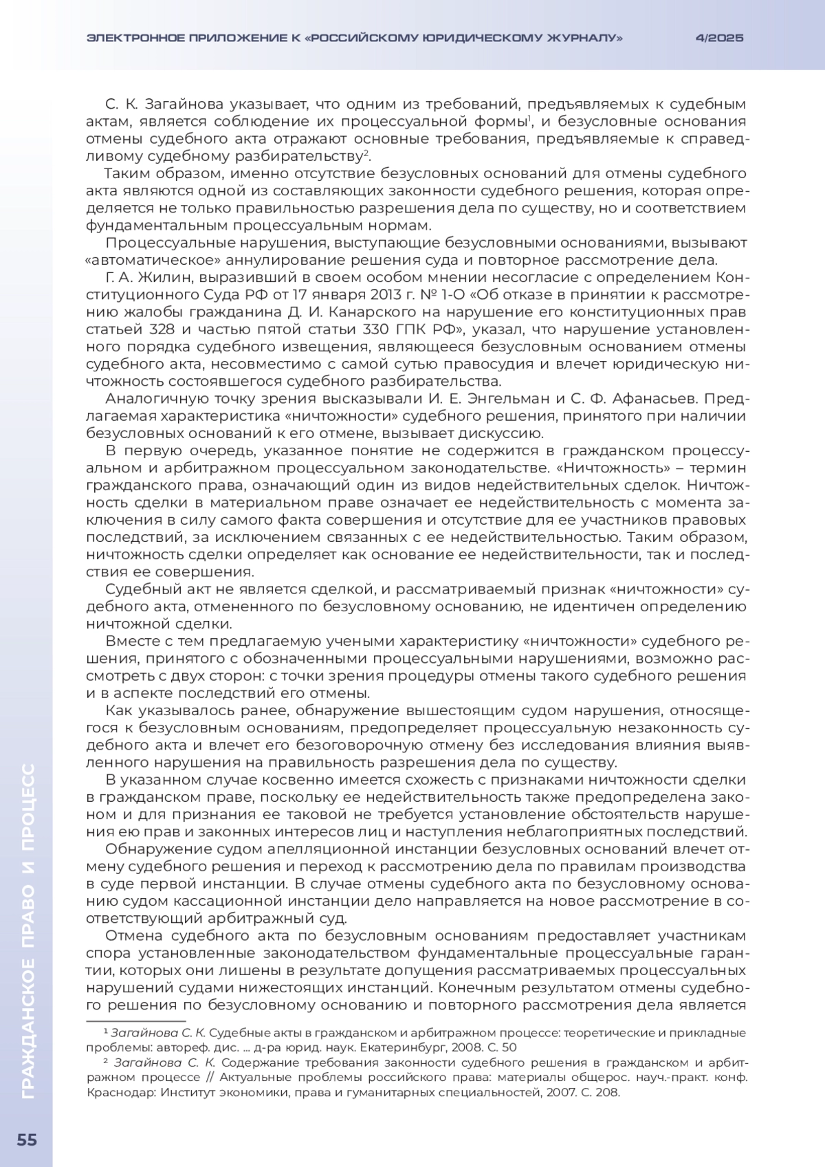СЕРОСТАНОВ В. Е. ПОНЯТИЕ БЕЗУСЛОВНЫХ ОСНОВАНИЙ ДЛЯ ОТМЕНЫ СУДЕБНЫХ АКТОВ В АПЕЛЛЯЦИОННОМ И КАССАЦИОННОМ ПОРЯДКЕ // ЭЛЕКТРОННОЕ ПРИЛОЖЕНИЕ К РОССИЙСКОМУ ЮРИДИЧЕСКОМУ ЖУРНАЛУ. 2025. № 4