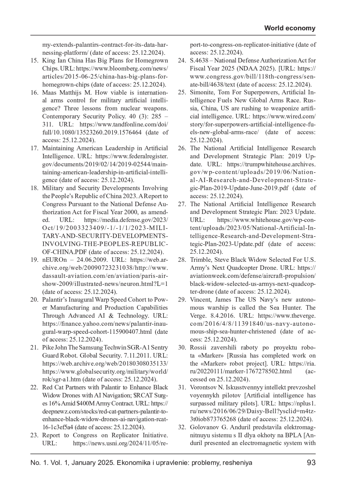 2. AI-wielding tech firms are giving a new shape to modern warfare [рус. Технологические компании, использующие искусственный интеллект, придают новую форму современной войне]. The Economis. Feb 16. 2023. URL: https://www.economist.com/business/2023/02/16/aiwielding-tech-firms-are-giving-a-new-shape-tomodern-warfare (дата обращения: 25.12.2024).