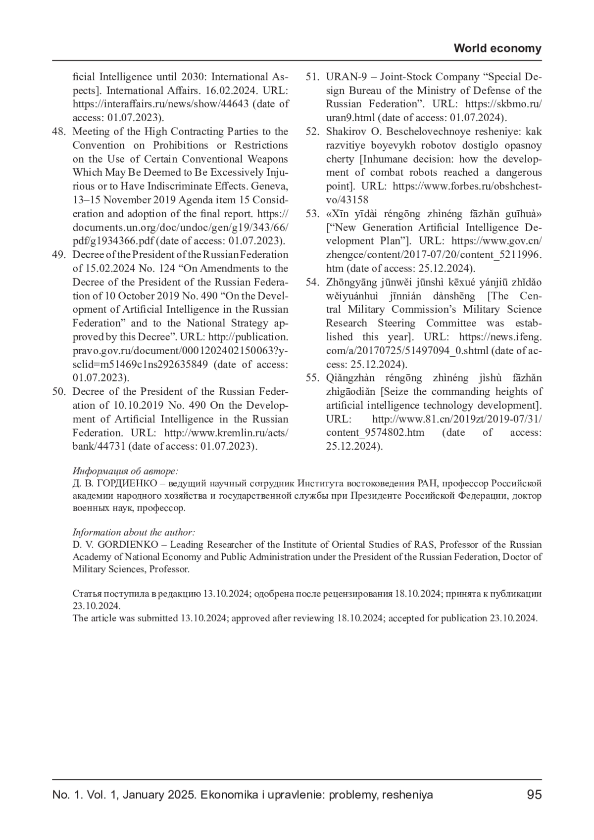 47. Смирнов А. И. Обновленная Национальная стратегия развития искусственного интеллекта до 2030 года: международные аспекты // Международная жизнь. 16.02.2024. URL: https://interaffairs.ru/news/show/44643 (дата обращения: 01.07.2023).